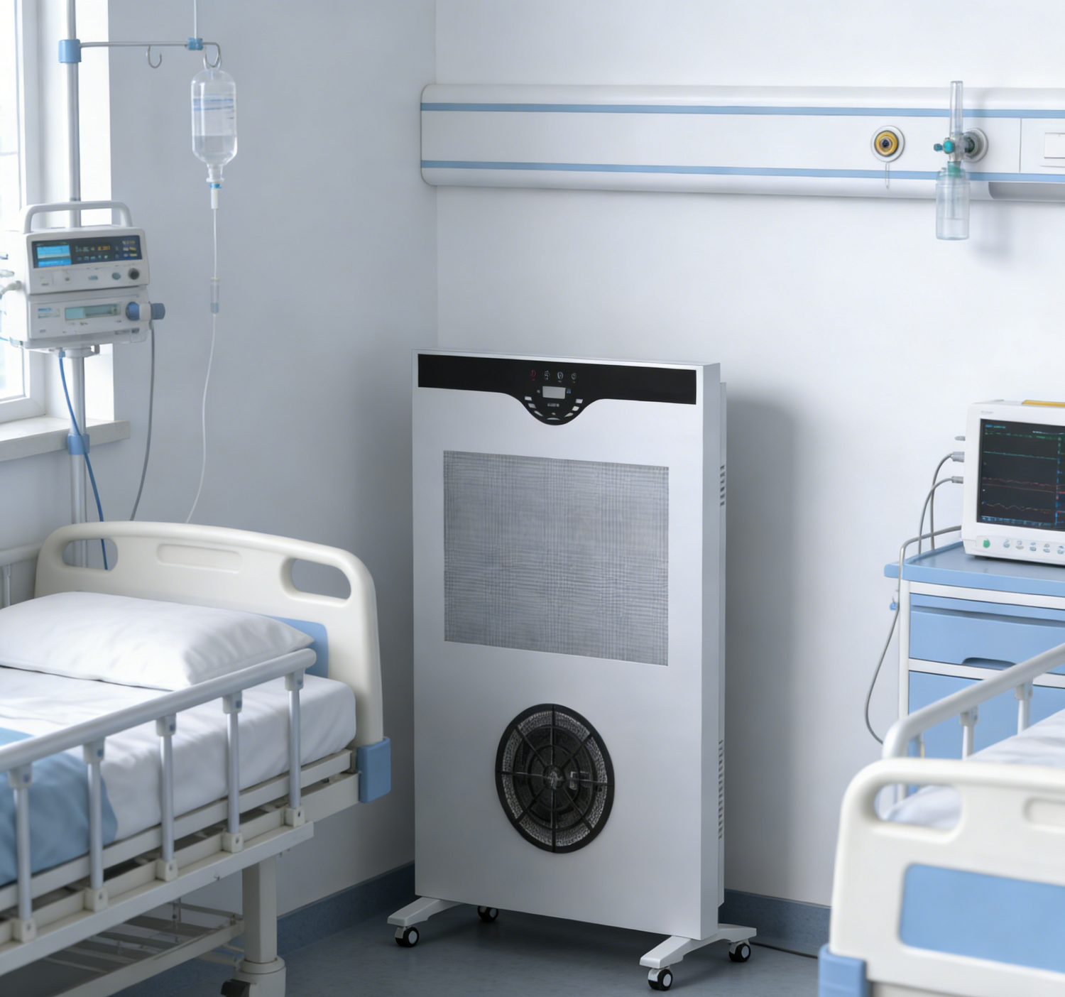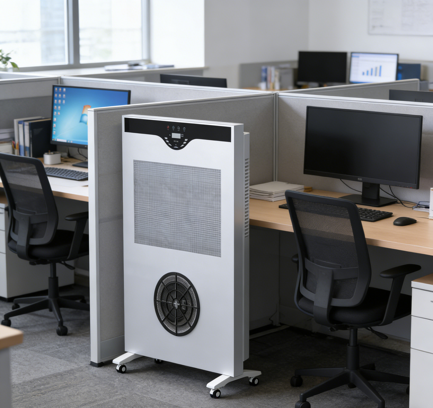 Dual control via touchscreen and remote control, four-speed fan adjustment, full-featured, efficiently purifies air, removing smoke and odors.